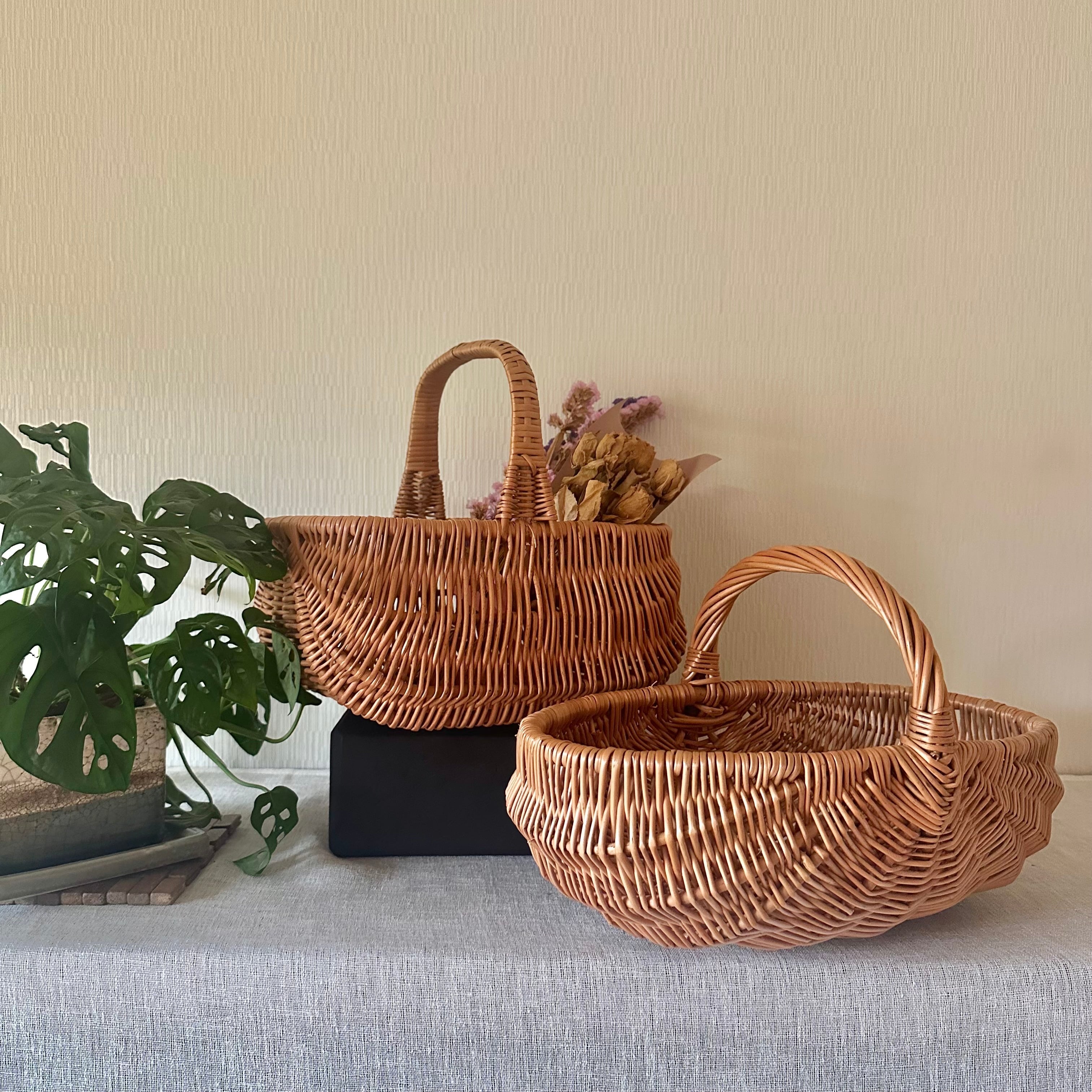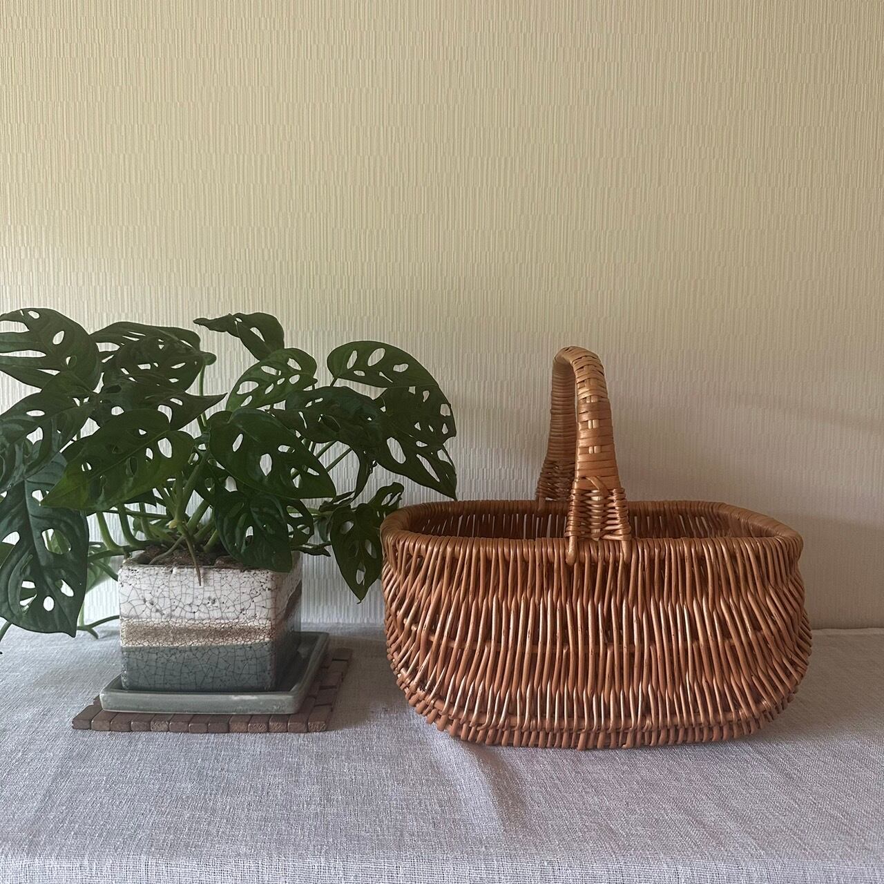 ラトビアのシンプルな手作りかご。柳でしっかりと編まれていて丈夫です。