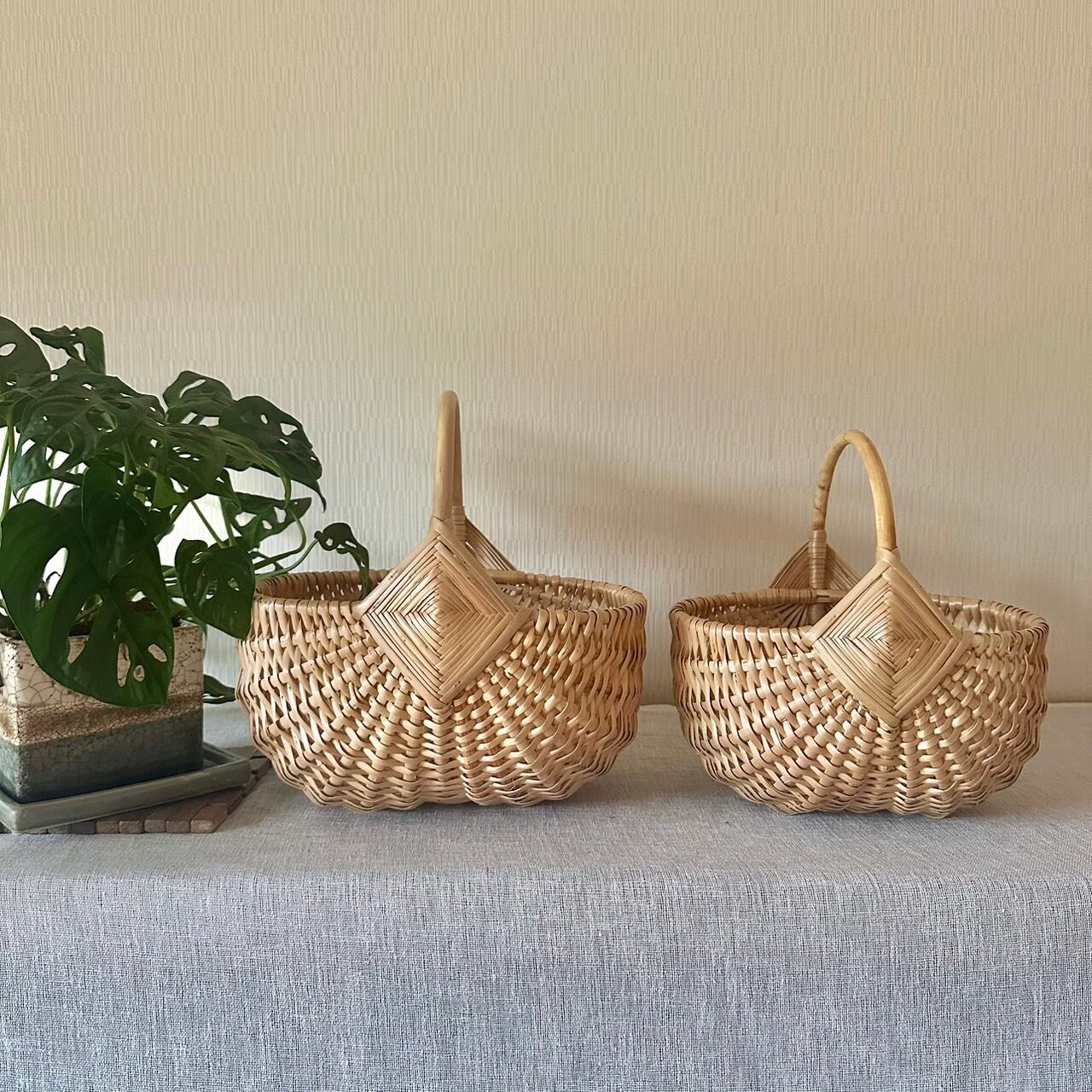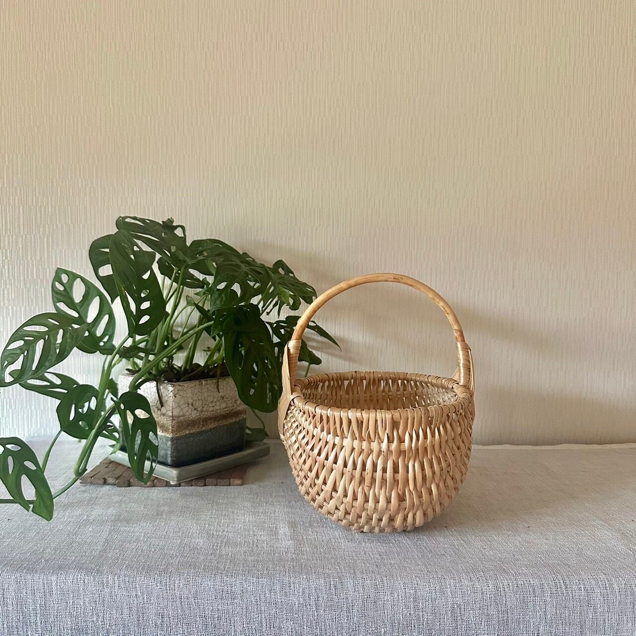 自然豊かなラトビアで、職人さんたちの手作りで1点1点作られている手編みのバスケット。ラトビアのシンプルな手作りかご。柳でしっかりと編まれていて丈夫です。