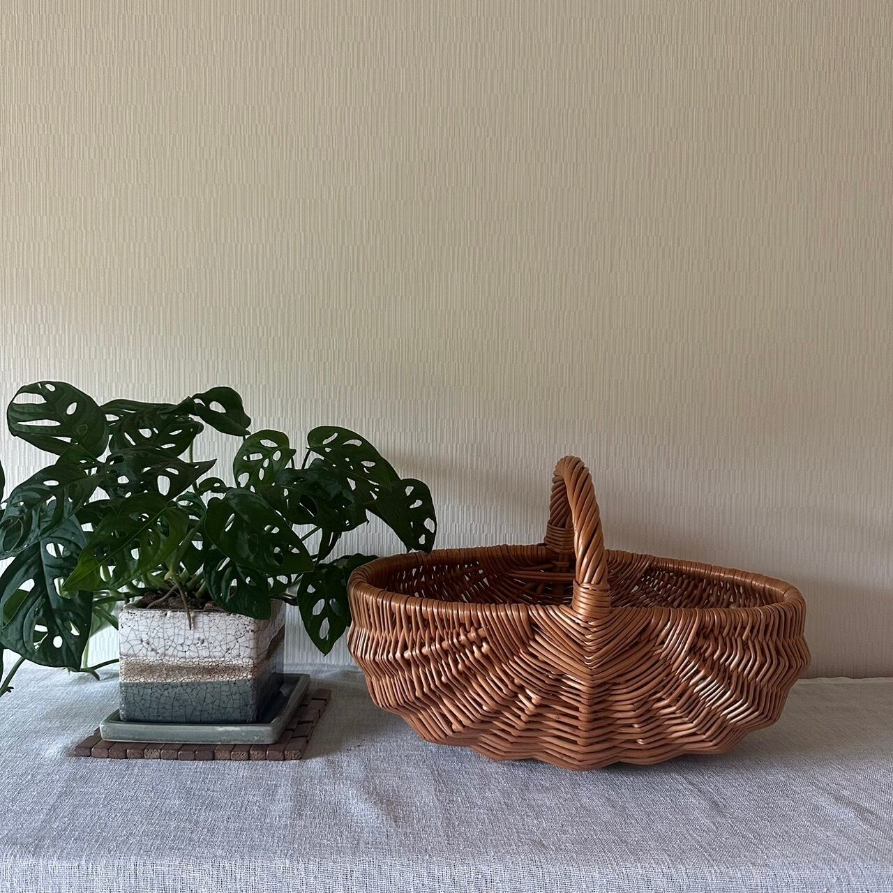ラトビアのシンプルな手作りかご。柳でしっかりと編まれていて丈夫です。